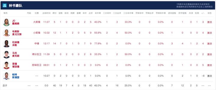 林书豪队:JD-戴维森、马克-麦克朗、布莱斯-麦戈文斯、莱昂纳德-米勒、丁克-佩特、里德-谢泼德、帕特-斯潘塞。
