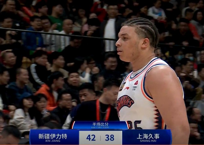 第二节比赛,上海一度将比分反超,随后新疆重新拿回领先优势。上半场比赛结束,新疆以42-38领先上海。