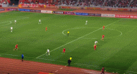 第35分钟,中国队前场打出地面配合,可惜最后铲射被对手封堵