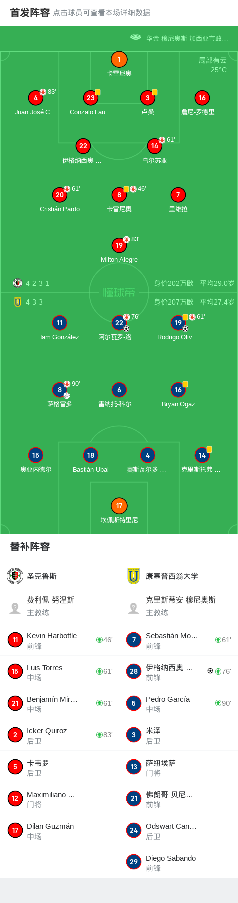 第29分钟,康塞普西翁大学球员萨格雷多助攻Rodrigo Olivares打入一球。