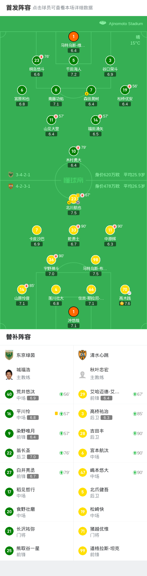 清水心跳1-0东京绿茵,北川航也一击制胜战报bot @懂球帝2025-02-16 14:59北京时间2月16日日本职业联赛J1 联赛 第1轮,东京绿茵主场对阵清水心跳。清水心跳北川航也破门。最终比分东京绿茵 0-1 清水心跳。点击查看本场比赛详细数据>>点击查看日职联完整积分榜>>精彩瞬间第40分钟,清水心跳球员高木践助攻北川航也打入一球。 球队阵容 技术统计 展开更多