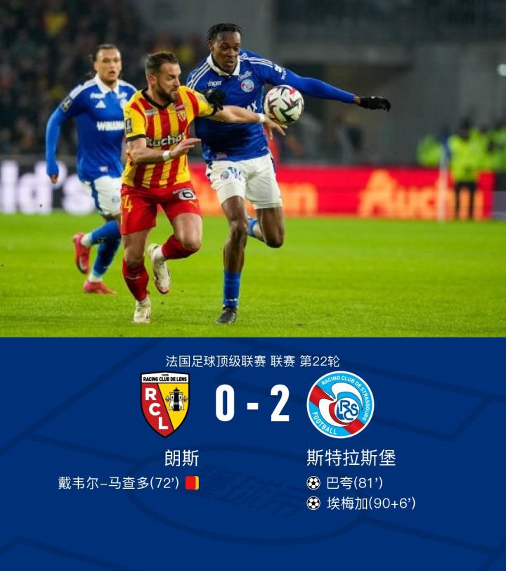 北京时间2月17日法国足球顶级联赛 联赛 第22轮,朗斯主场对阵斯特拉斯堡。斯特拉斯堡巴夸破门,埃梅加破门。最终比分朗斯 0-2 斯特拉斯堡。