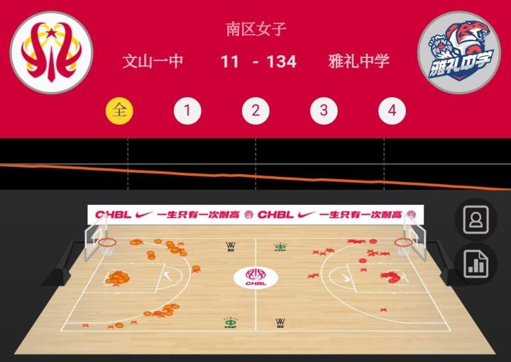 北京时间2月17日,在今天下午结束的耐高南区女子A组比赛中,来自湖南长沙的雅礼中学以134-11的大比分战胜来自云南文山的文山一中。