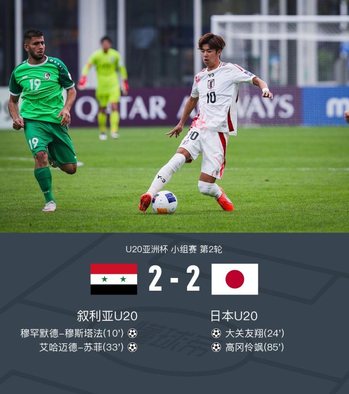U20亚洲杯:叙利亚2-2日本,高冈伶飒替补破门,苏菲建功