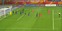 第7分钟,差点打进幸运球,泰国门将阿努扑救击中金泰元面部后弹出