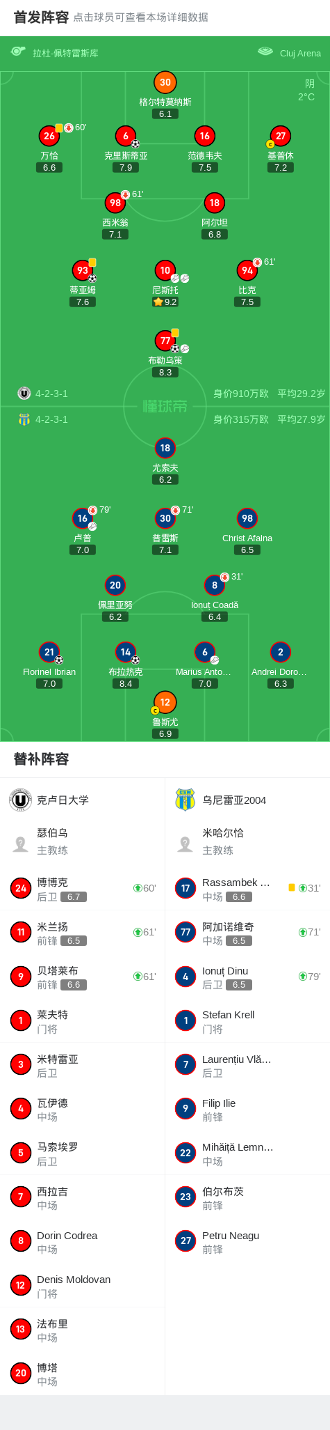 第81分钟,克卢日大学球员尼斯托助攻布勒乌策打入一球。