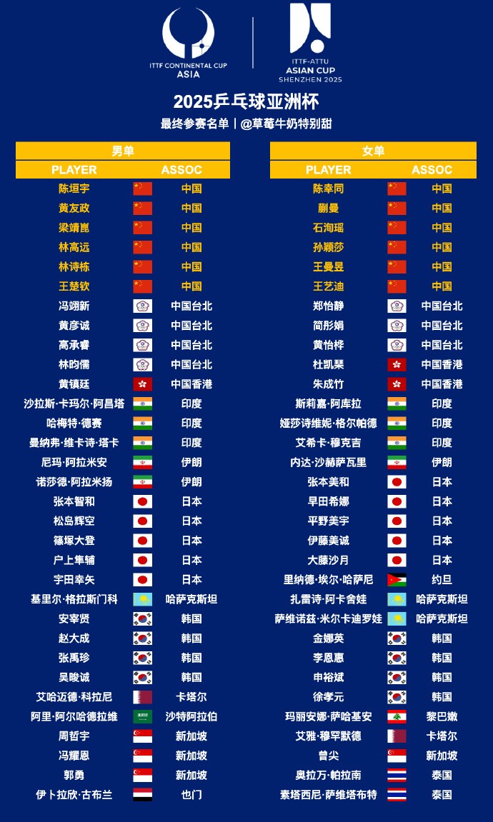 乒乓球亚洲杯男单抽签:王楚钦对阵宇田幸矢;黄友政迎战张本智和
