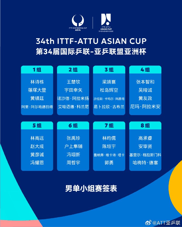 北京时间2月18日,2025乒乓球亚洲杯抽签仪式正式举行。最终,经过抽签,男单方面,王楚钦、林诗栋、黄友政、陈垣宇、梁靖崑、林高远各分一组。其中,黄友政将迎战张本智和,王楚钦则对阵日本选手宇田幸矢。比赛将于2月19日上午在深圳大运中心正式开打。