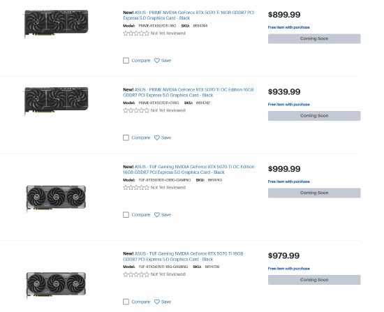 据外媒playground报道,GeForce RTX 5070 Ti显卡首次出现在美国零售商百思买的名单中。虽然还未开始正式销售,但初步价格已经揭晓——基本版起价为899美元,华硕顶级版起价为999美元。