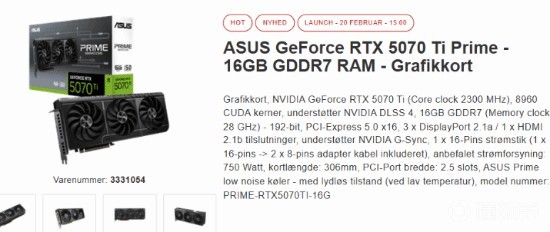 此前,另一家大型零售商法国TopAchat在RTX 5070 Ti新品预售页面上明确标注,开卖时间为2月20日22点。