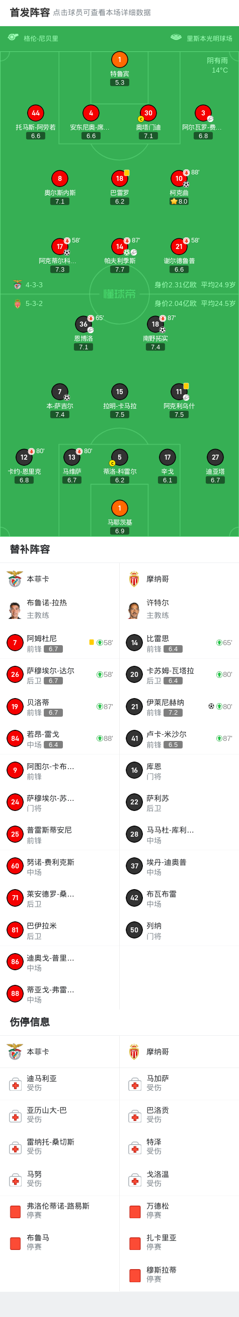 本菲卡总比分4-3摩纳哥晋级,帕夫利季斯传射,柯克曲制胜