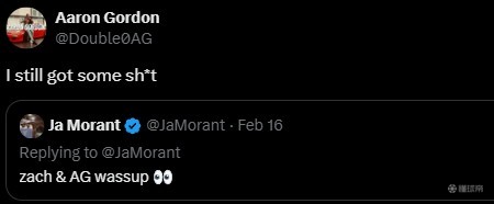 北京时间2月19日,戈登更新社媒回应莫兰特扣篮大赛的邀约,他表示:我还有些东西。