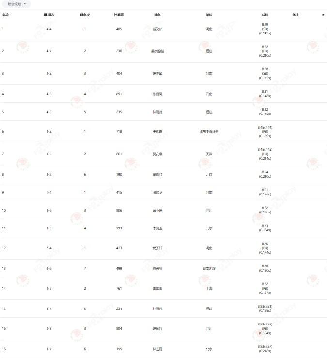林雨薇以8秒32排名第5,而夏思凝从起跑就处在末位,以8秒78小组垫底,总排名为第13位。
