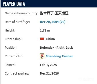 此前中国足协宣布对年龄造假的球员谢木西丁-玉素甫江处以禁赛处罚,近日德国转会市场确认:这名球员就是原国青队员、现效力于山东泰山的玉苏甫。