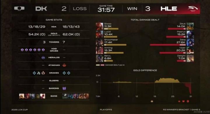 LCK季后赛:DK 2-3 HLE,Zeus无解奥拉夫逆转局势挺进决赛