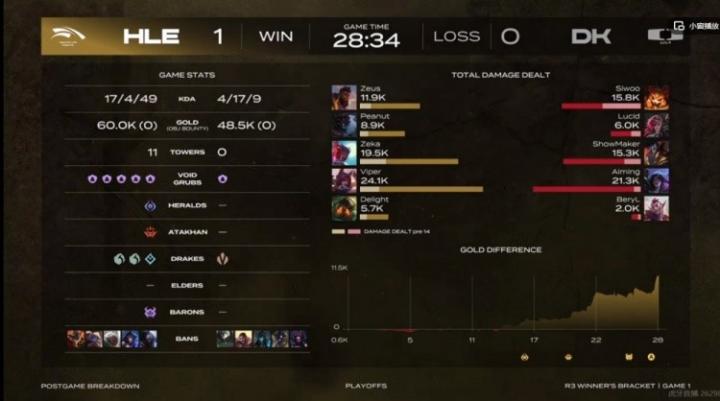 第36分钟,Delight落单被击杀,随后ShowMaker绕后,DK打出0换4,BeryL阻止Peanut回家,DK顺利推掉HLE水晶拿下赛点,11-25。