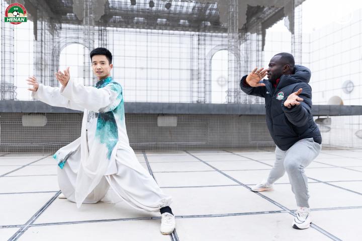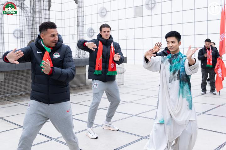 出征仪式现场,河南俱乐部酒祖杜康队全体成员来到了《只有河南》18号剧场的“乾台”,通过体验太极来感受文化的传承,快节奏的足球和慢节奏的太极相互交融,仿佛告诉我们在发展河南足球的进程中既要大刀阔斧、不断改革,又要夯实基础、坚守初心。