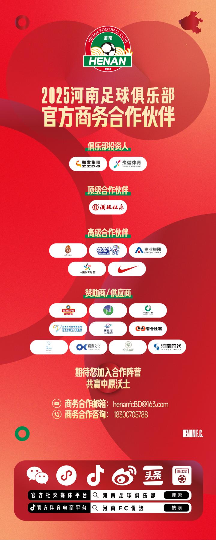 2024赛季是河南足球的而立之年,除了追求球队成绩的突破,俱乐部更是深耕运营,提升自我造血能力,加大了对市场开发的力度,成立了由俱乐部管理层组成的重点商务专班,针对省域特色浓厚、品牌张力强的企业洽谈合作,配合豫酒振兴和奶业振兴,签订了一系列商务合同。