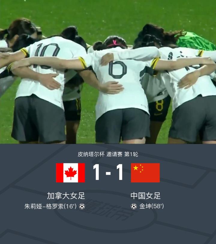北京时间2月20日皮纳塔尔杯 邀请赛 第1轮,加拿大女足对阵中国女足。上半场朱莉娅-格罗索右路前插突破至禁区,推射远角破门先拔头筹。下半场金坤禁区内抓住机会,跟进一脚抽射破门将比分扳平。最终比分加拿大女足 1-1 中国女足。