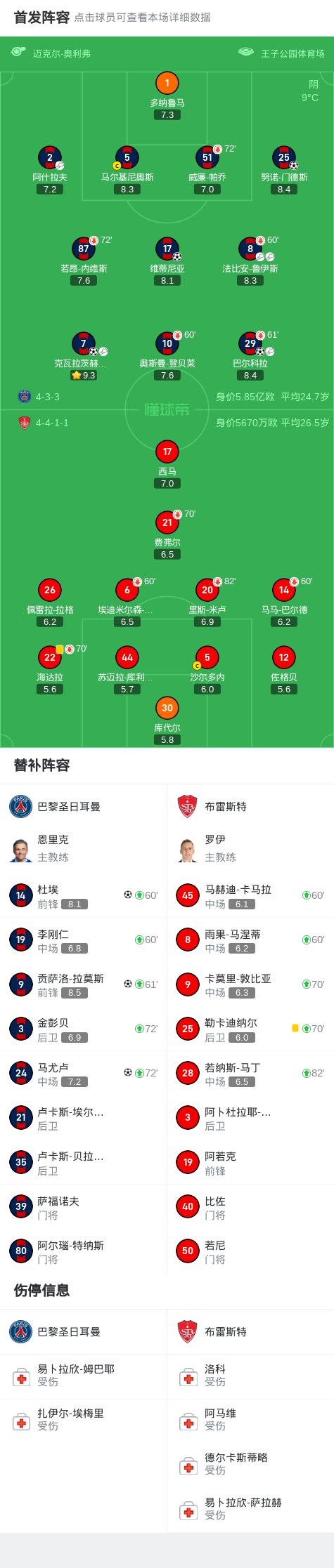 巴黎总比分10-0狂扫布雷斯特,巴尔科拉传射,马尤卢锁定比分