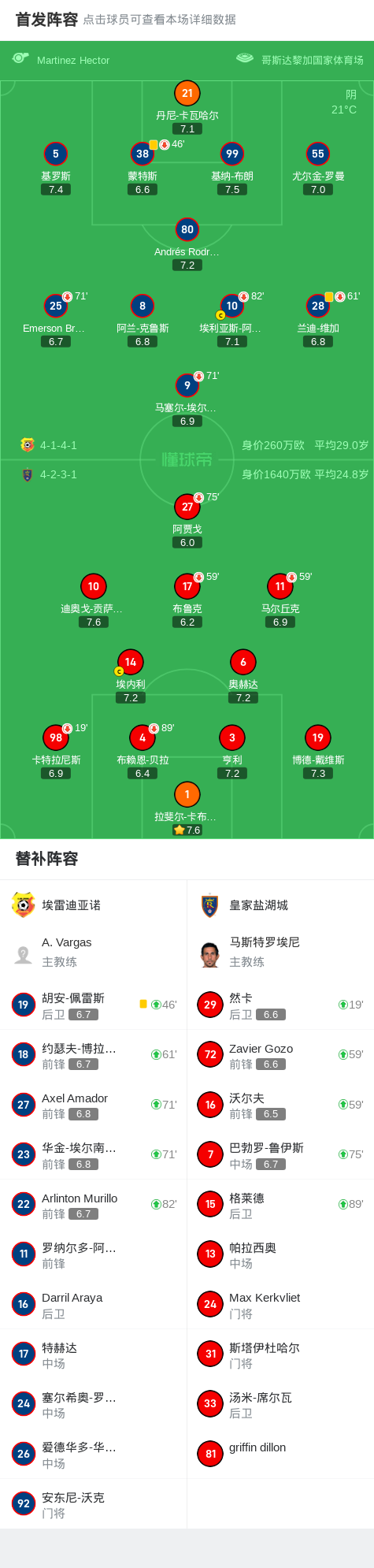 埃雷迪亚诺0-0皇家盐湖城,秋色平分战报bot @懂球帝2025-02-20 09:28北京时间2月20日中北美冠军联赛 第一轮首回合,埃雷迪亚诺对阵皇家盐湖城。最终比分埃雷迪亚诺 0-0 皇家盐湖城。点击查看本场比赛详细数据>>点击查看美冠杯完整积分榜>> 球队阵容 技术统计 展开更多
