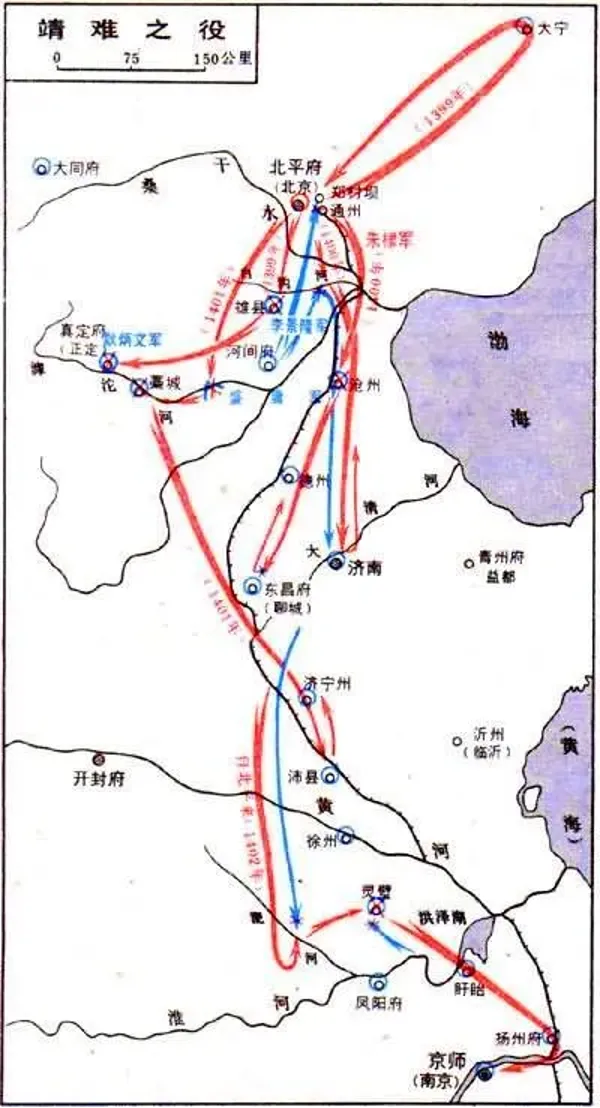 公元1400年,当时还是燕王的朱棣打着清君侧(古代造反常用口号,即帮助皇帝清理门户)的旗号,在驻地北平府(今天北京)附近的海河平原发动靖难之战,以夺取侄子的皇位。