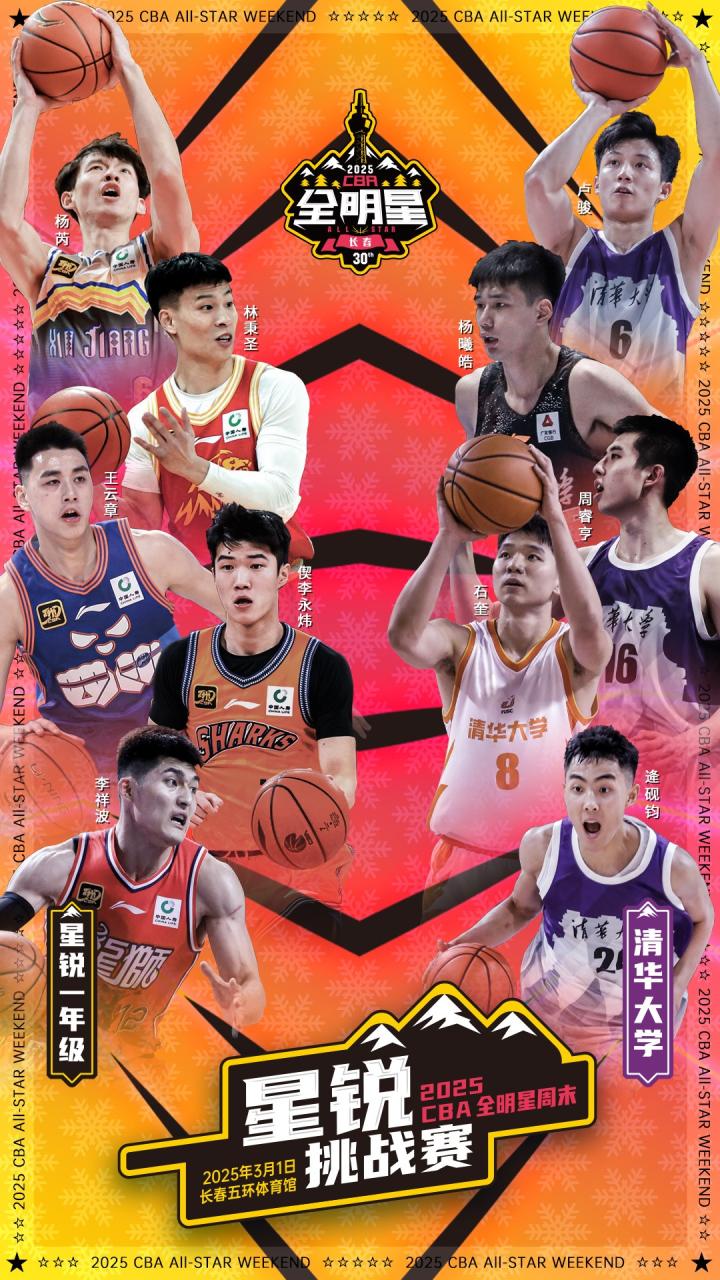 今年全明星周末星锐挑战赛将于3月1日进行,具体时间和对阵安排如下: