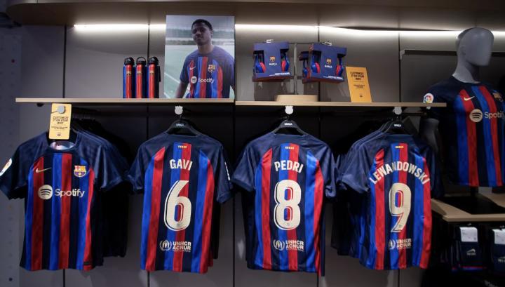 拉菲尼亚和佩德里的球衣销量排在之后,谁最近的表现更好一般就会排在第三位。