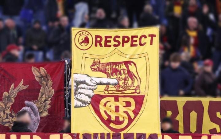 对裁判争议不满,罗马球迷打出标语“欧足联,尊重罗马”四条腿的车 @懂球帝2025-02-21 01:53欧联杯淘汰赛附加赛次回合的一场较量已经开始,罗马正在主场迎战波尔图。在罗马奥林匹克球场的看台上,有球迷打出了一个标语,上面有欧足联的标志和“尊重”的字样,以及一只手指着罗马队徽的图案。这实际上是在模仿首回合比赛中罗马后卫詹卢卡-曼奇尼对当值主裁判托比亚斯-斯蒂勒所做的动作,而他本人则表示这是因为他认为这名裁判对罗马缺乏尊重。相关阅读:【首回合为何向裁判展示队徽?詹卢卡-曼奇尼:希望他尊重罗马】展开更多