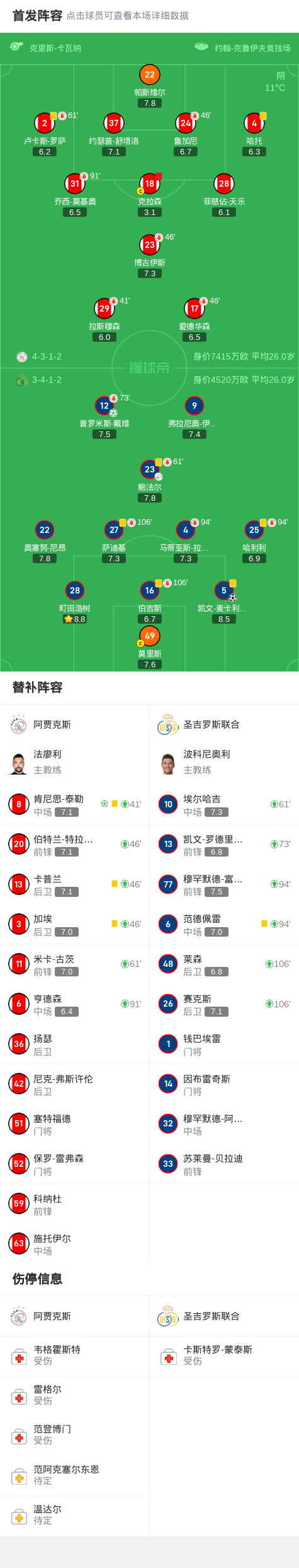 十人阿贾克斯加时总分3-2圣吉罗斯联合晋级,肯尼斯-泰勒制胜