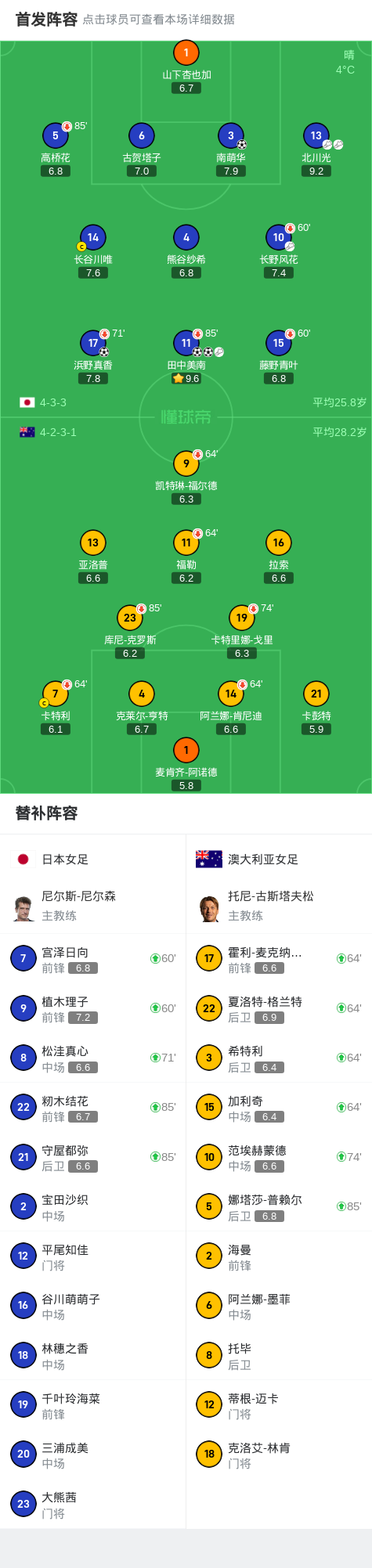 日本女足4-0大胜澳大利亚女足,田中美南两球,南萌华建功