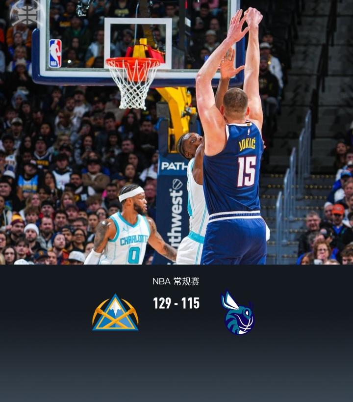 第四节掘金贾马尔-穆雷拿下7分,黄蜂小尼克-史密斯拿下9分,最终掘金129-115战胜黄蜂