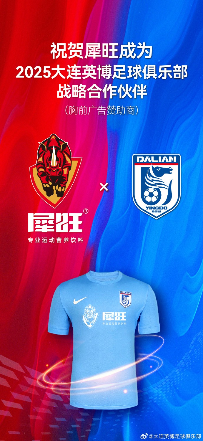 北京时间2月21日,大连英博官方发布公告,犀旺运动营养饮料成为2025赛季球衣胸前广告赞助商。未来大连英博也将与欧塞尔达成战略合作。