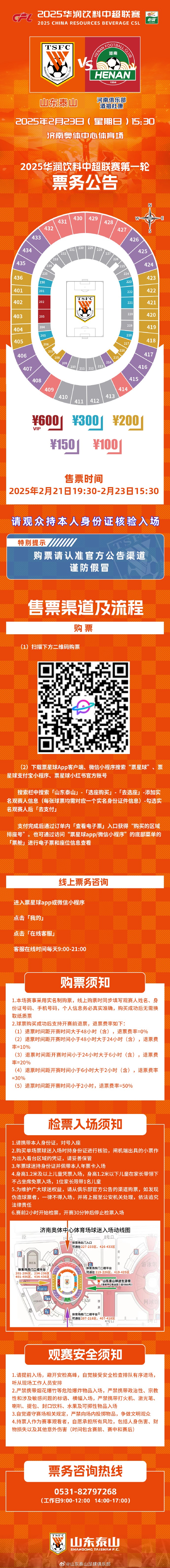 山东泰山主场战河南队的比赛已开票,票价最低100元盖坦9 @懂球帝2025-02-21 20:57北京时间2月21日,山东泰山主场战河南队的比赛已开票,票价最低100元。山东泰山的单场票共分为100元、150元、200元、300元、600元5个价位。开售时间为2月21日19:30(已开售),截止日期为2月23日15:30。山东泰山新赛季的主场依旧为济南奥体中心体育场。北京时间2月23日15:30,中超第1轮,山东泰山将在主场对阵河南队。展开更多