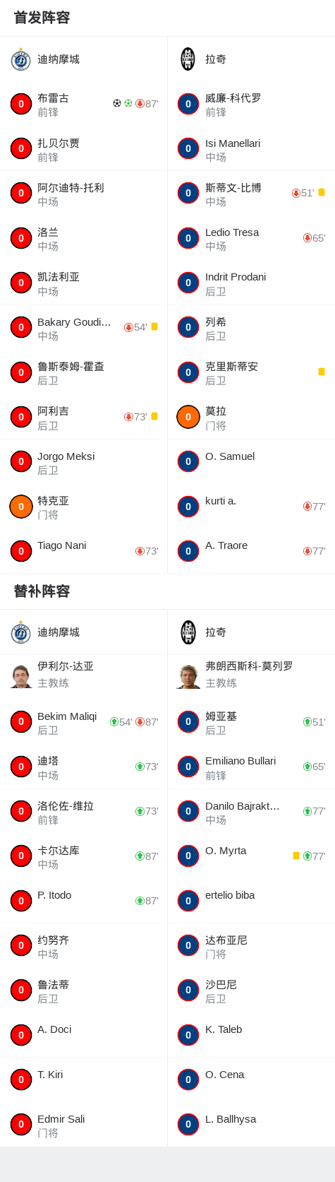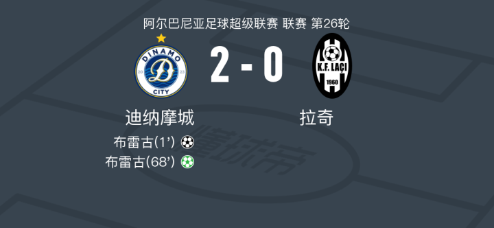 迪纳摩城2-0拉奇,布雷古独中两元战报bot @懂球帝2025-02-21 23:54北京时间2月21日阿尔巴尼亚足球超级联赛 联赛 第26轮,迪纳摩城主场对阵拉奇。迪纳摩城布雷古梅开二度。最终比分迪纳摩城 2-0 拉奇。点击查看本场比赛详细数据>>点击查看阿尔巴超完整积分榜>>精彩瞬间第1分钟,迪纳摩城球员布雷古打入一球。第68分钟,迪纳摩城球员布雷古罚入点球。 球队阵容 技术统计 展开更多