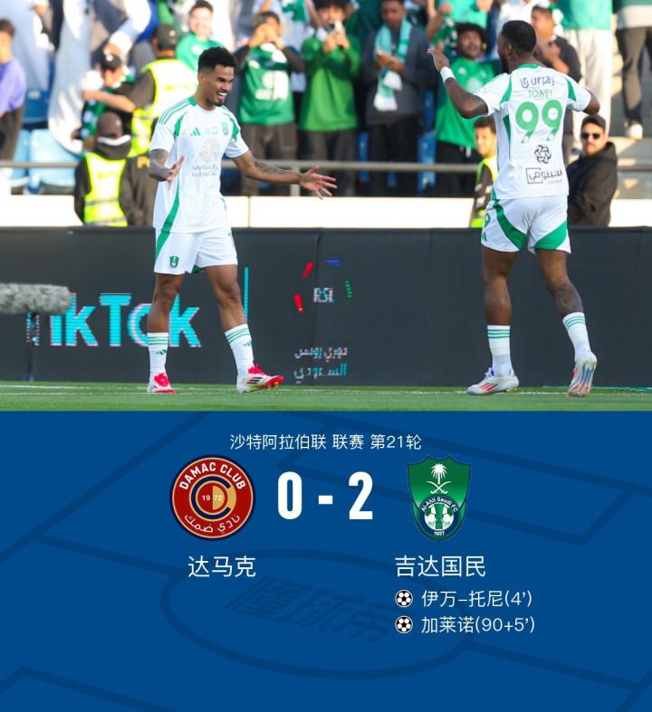 吉达国民2-0客胜达马克,伊万-托尼闪击,加莱诺传射建功