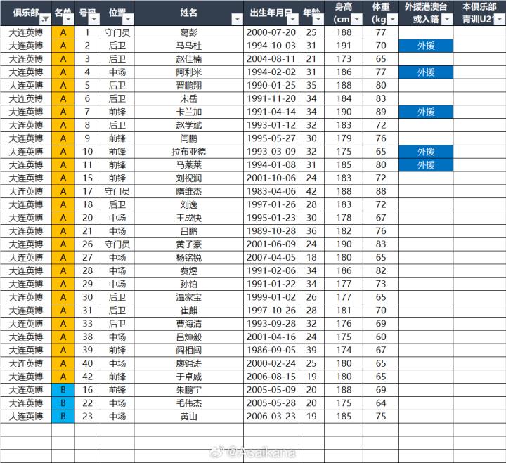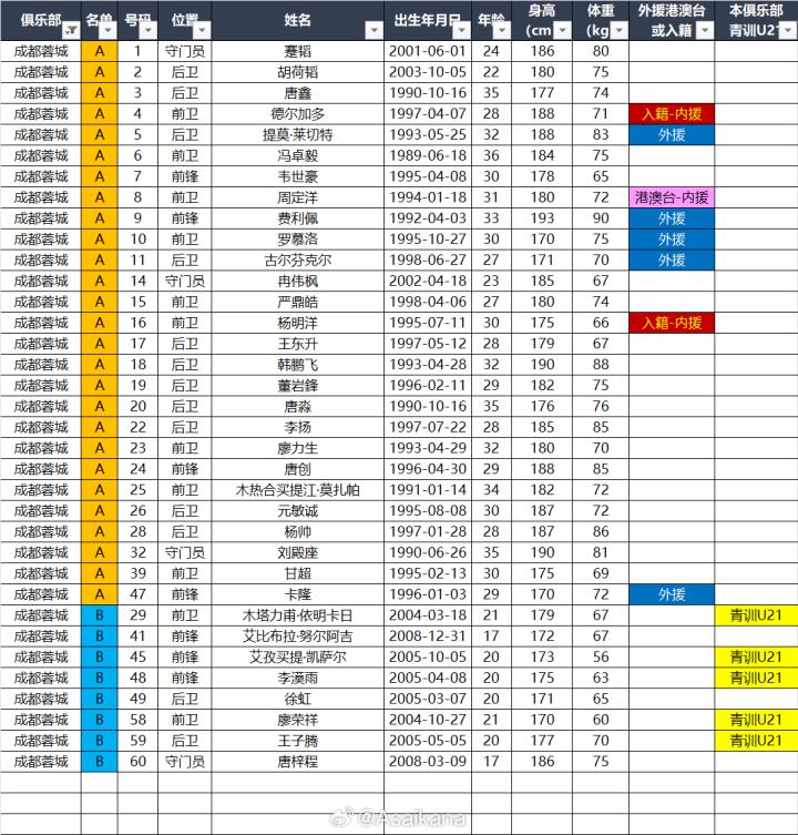 2025中超联赛各参赛队球员名单 (自整理,非官方,如有出入以官方发布为准)