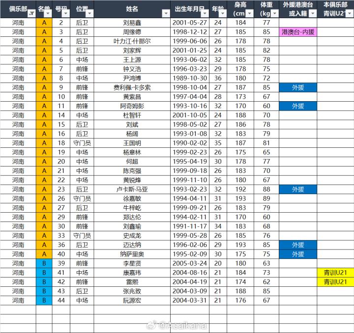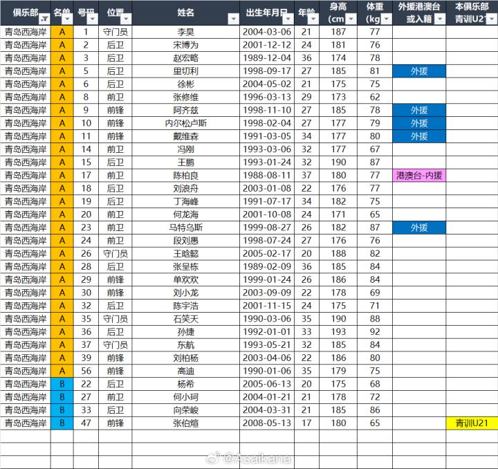 2025中超联赛各参赛队球员名单(自整理,非官方)