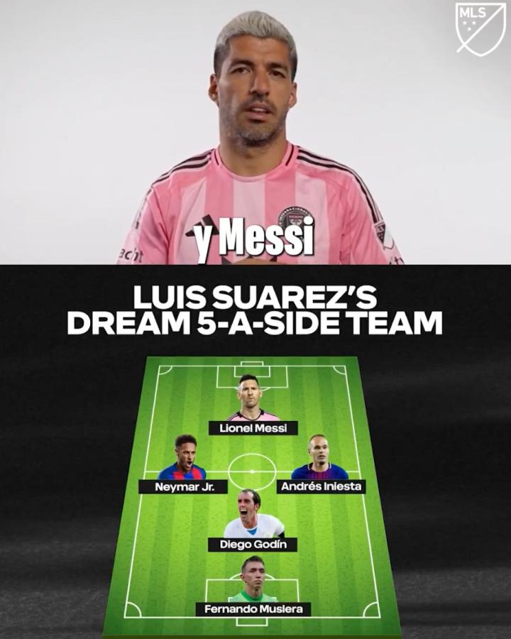 门将位置上苏亚雷斯挑选了自己过去在乌拉圭国家队的队友穆斯莱拉,后卫则同样是苏牙的国家队队友,前马竞队长戈丁。中场苏亚雷斯挑选了自己过去在巴萨的队友伊涅斯塔和内马尔,前锋则是目前仍在迈阿密国际与苏亚雷斯搭档的梅西。