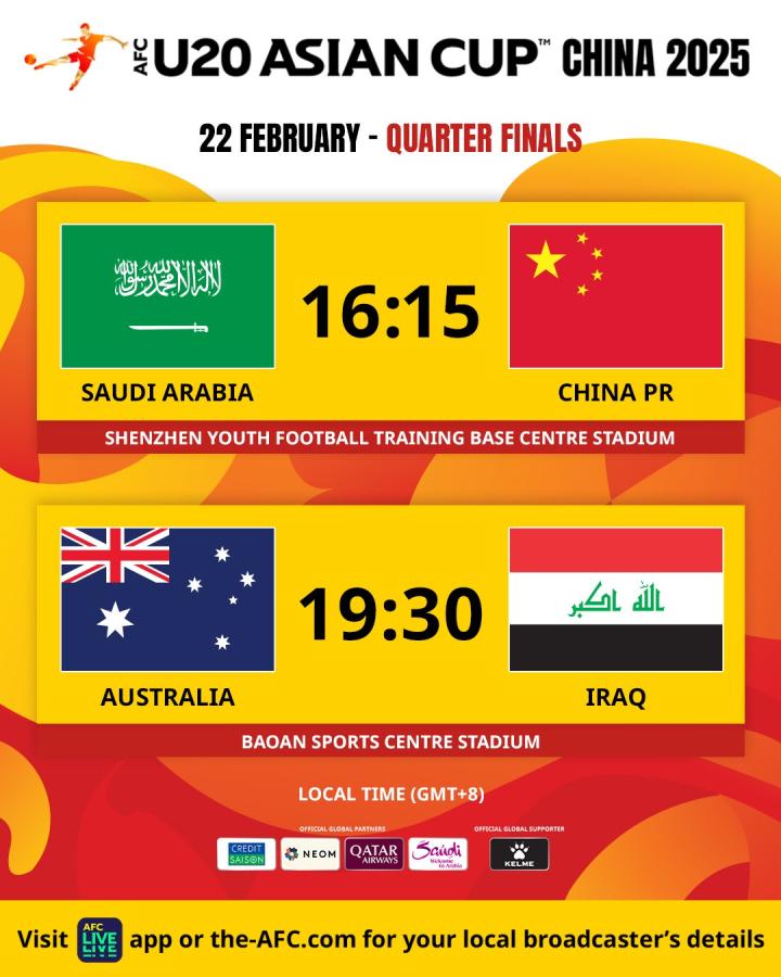 北京时间2月22日下午16:15,U20亚洲杯1/4决赛,中国U20将迎战沙特阿拉伯U20。