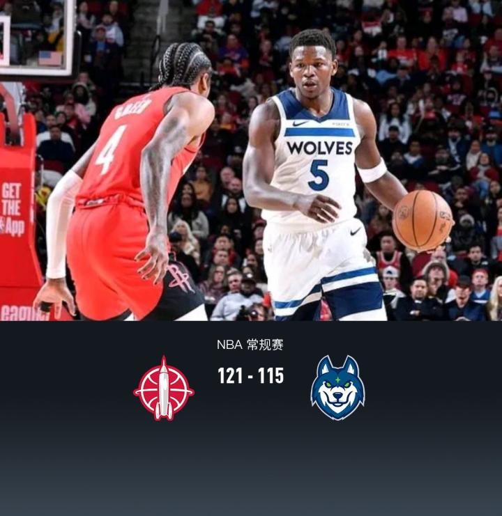 火箭121-115力克森林狼,杰伦-格林35+5,爱德华兹37分