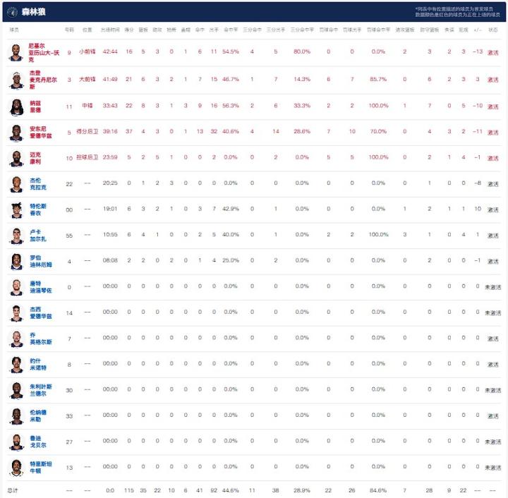 明尼苏达森林狼安东尼-爱德华兹37分4板3助,纳兹-里德22分8板3助,麦克丹尼尔斯21分6板3助。