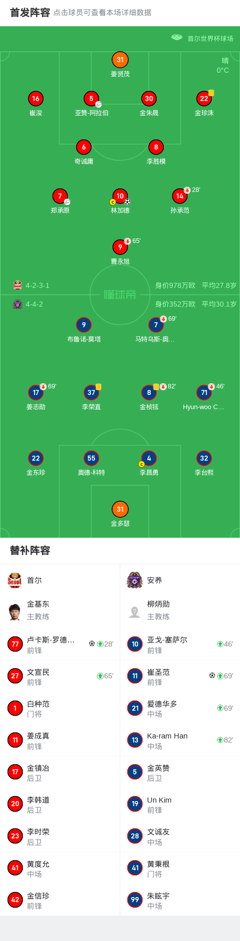 北京时间2月22日韩国经典K联赛 联赛 第2轮,首尔主场对阵安养。首尔林加德破门,卢卡斯-罗德里格斯破门。安养崔圣范破门。最终比分首尔FC 2-1 安养。