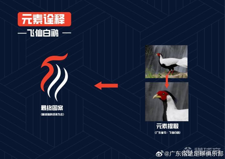 广东铭途新队徽含义:元素来自广东省鸟飞仙白鹇,背景为绳结