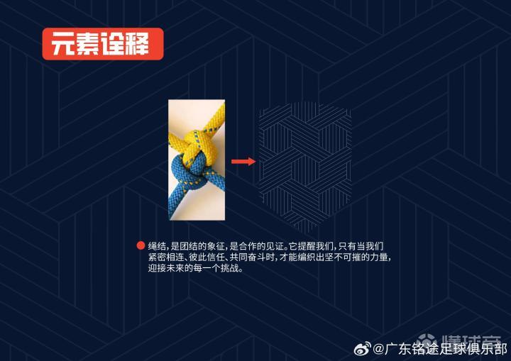 此外,新队徽里的背景元素为绳结,这是团结的象征,是合作的见证。