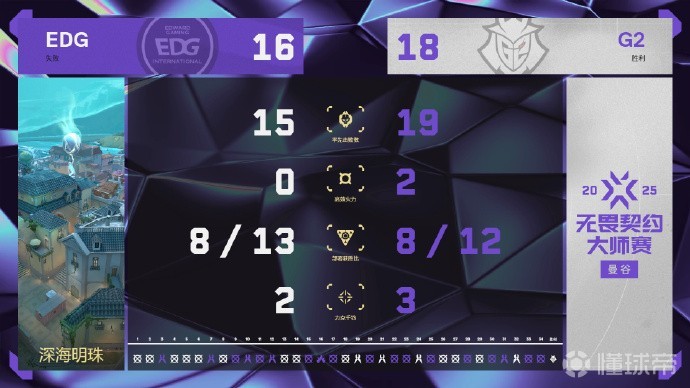 第14回合,EDG提速A厅,G2顶住压力,球球遗憾错失1v3残局,12-2。第15回合,EDG存钱局丢分,12-3。