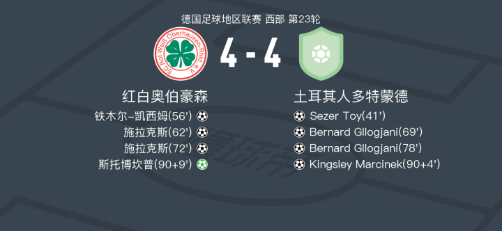 红白奥伯豪森4-4土耳其人多特蒙德,Sezer Toy打破僵局,斯托博坎普扳平比分