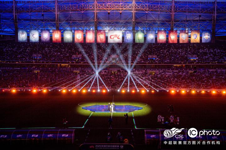 球迷耳熟能详的中超联赛主题曲《超越》和中超联赛官方助威曲《荣耀光芒》轮番奏响。16 面中超参赛队队旗依次被点亮,承载着中超联赛的荣耀与梦想。