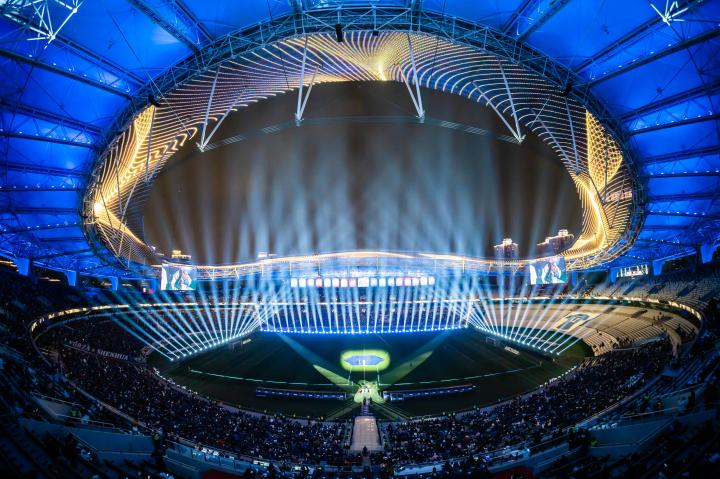 上海申花足球俱乐部2月22日19:30,2025中超联赛开幕式在上海体育场举行。仪式开场,结合上海体育场国际首屈一指的360度天幕环屏,一场华丽的多媒体灯光秀瞬间将现场气氛点燃。