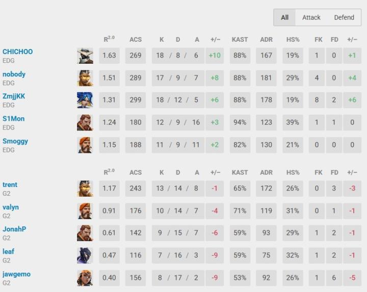 决胜图数据方面,EDG全员在线,三人ACS超过260,完全统治裂变峡谷,并送给美洲霸主G2赛季首败。